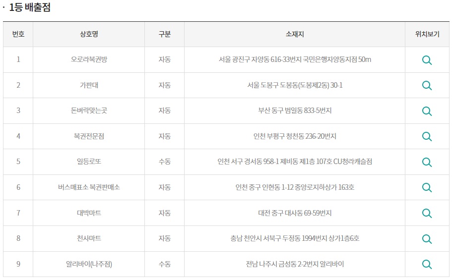지난회차 행운번호 당첨결과 입니다.