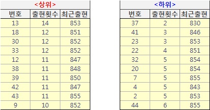 ❚ 로또856회차 분석 - 개별출현번호
