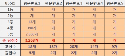 ❚ 로또855회차(이전회차)행운번호 당첨결과