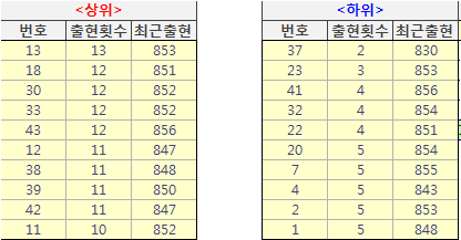 ❚ 로또857회차 분석 - 개별출현번호