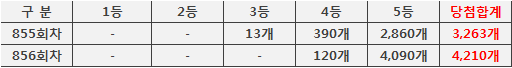 ❚ 로또856회차(이전회차)행운번호 당첨결과