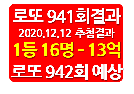 | 로또942회당첨번호 943회 예상번호 통계자료 (0) | 2020.12.19 |