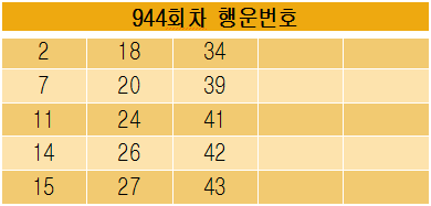 로또 944회차 행운번호(예상)