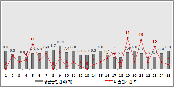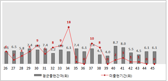 (간혹 20번대가 몰아서 출현하는 경우도 있었음)