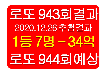 로또 943회 당첨번호(2020.12.26.)
