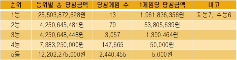 2등 당첨자는 총 79명으로 지난회차와 비슷한 당첨금액(5,500만원)이 책정되었습니다.
