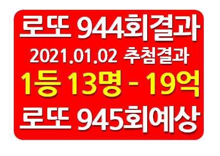 로또 944회 당첨번호(2021.01.02.)