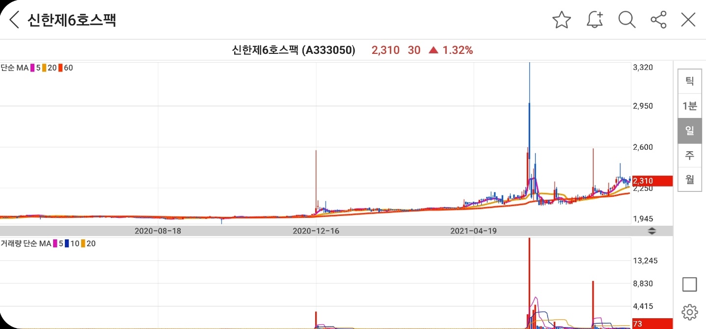 이렇듯 스팩주는 공모가 이상으로 주권거래를 할경우 충분한 위험이 있을 수 있으니 조심하셔야 할 것 같습니다. 2020년 코로나19사태가 발생하고 1년이 지난 지금은 시장에 딱히 주도주가 없어서 몸집이 가벼운 스팩주가 이상반응을 보이는 경우가 허다합니다. 늘 투자에 주의하시길 바랍니다.