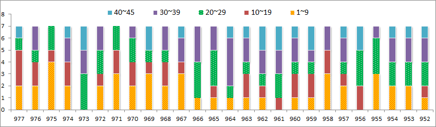 977회차 당첨번호 발표 이후 전체번호 흐름