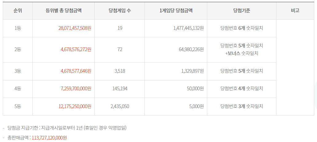 이번 1118회차 로또 당첨금액을 알아보겠습니다. 먼저 1등부터 5등까지 총 당첨금액을 순차적으로 알아보도록 할게요.
