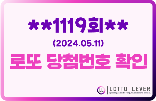 이번주에도 많은 분들이 로또를 구매하고 당첨을 기대했을 것입니다. 로또 당첨번호를 확인하는 것은 여러분의 설렘과 기대를 가장 크게 만들 수 있는 순간인데요. 기다리던 숫자들이 당첨 번호에 포함되었는지 아래 글을 보시면서 확인해 보세요. 이번 1119회차 로또 당첨번호는 다음과 같습니다 :)