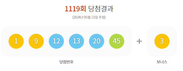 5월 11일 제1119회 동행복권 로또 추첨 결과는 아래와 같습니다: