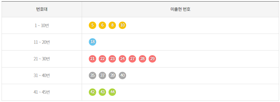 최근 5주간 기간별 미출현 번호는 아래와 같습니다.