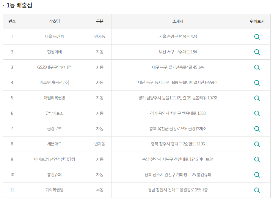 이렇게 11개 판매점에서 로또 1등 당첨번호가 나왔습니다. 로또 1120회 당첨판매점에 대해 좀 더 알아볼까요?