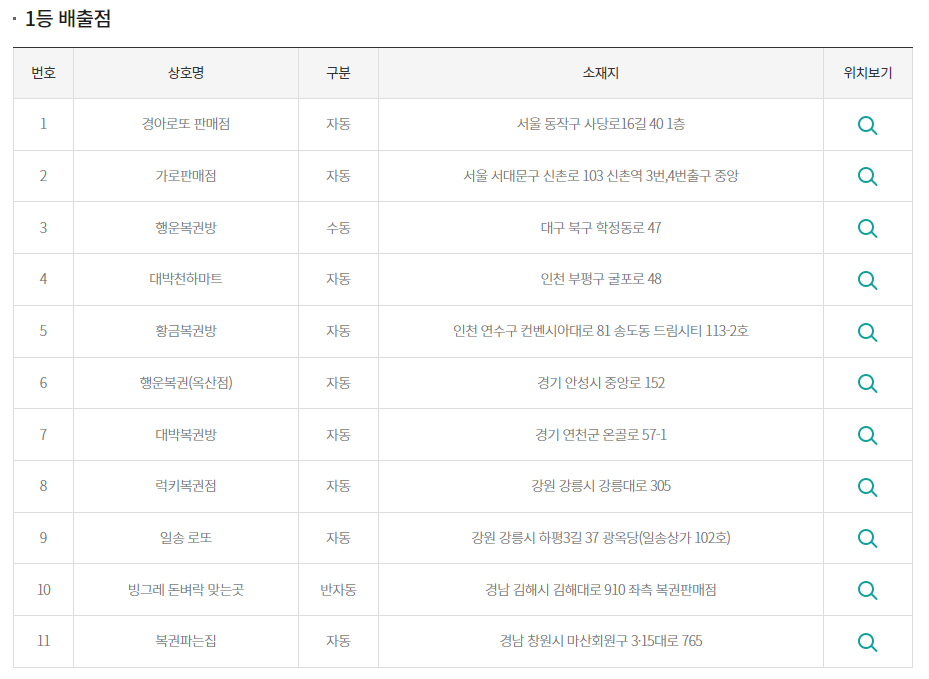 이렇게 11개 판매점에서 로또 1등 당첨번호가 나왔습니다. 로또1122회 당첨판매점에 대해 좀 더 알아볼까요?