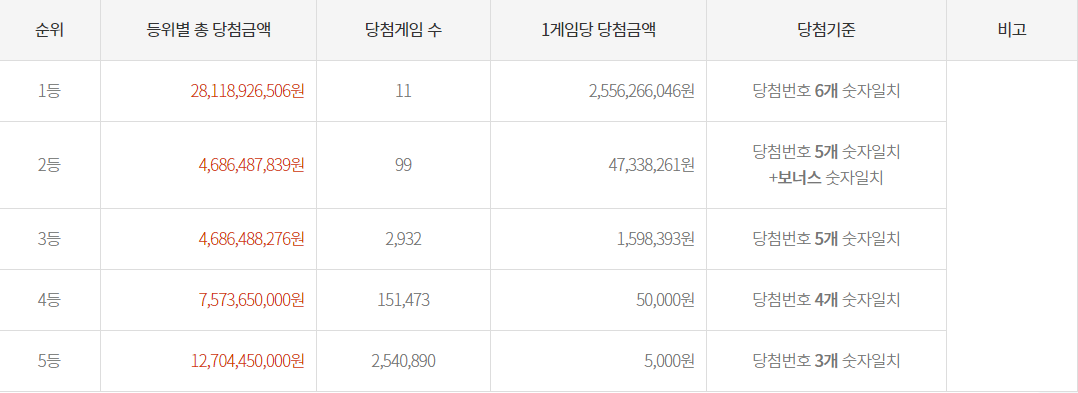 - 1등 당첨금 : 2,556,266,046원